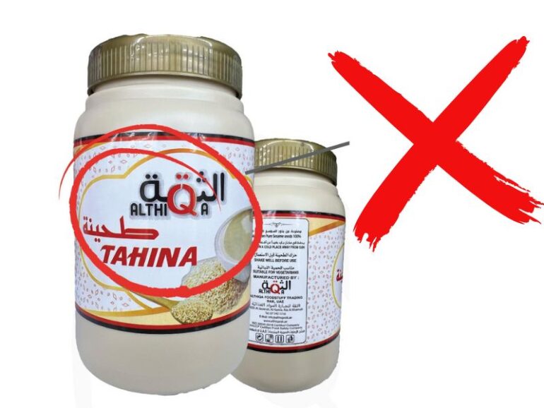 Muscat – खाद्य सुरक्षा र गुणवत्ता केन्द्रले अल्थियोवा ब्रान्ड ताहिनीको लागि उपभोक्तालाई चेतावनी जारी गरेको छ, तुरुन्त उपभोगबाट जोगिन आग्रह गर्दछ। मन्त्रीको रिजोलुसन नं 22223/11 को अन्तर्गत खाद्य उत्पादनहरूमा प्रतिबन्धित पदार्थको पत्ता लगाउँदा चेतावनी, 2023/11 को अन्तर्गत खाद्य उत्पादनहरूमा कमदर्शी उत्पादन हुन्छ।