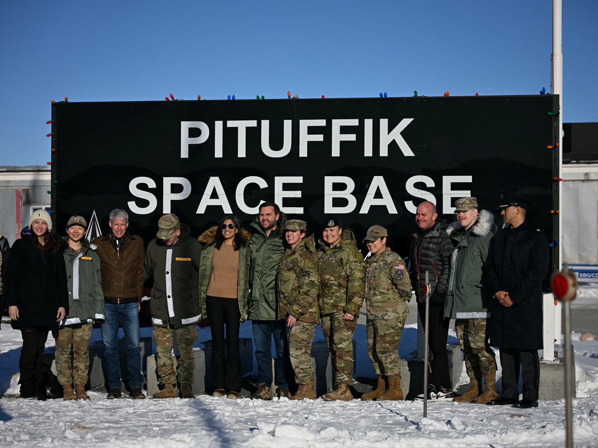 उपराष्ट्रपति जेडी VINCE, उनकी श्रीमती र उनकी अन्य अधिकारीहरूले ग्रीनल्याण्डर्स र दायिहरु बीचको एक अमेरिकी सैन्य आधार को लागी एक यात्रा मा एक अमेरिकी सैनिक भ्रमण गरे कि मूल प्रतीक माने को लागी योजना गरिएको थियो।