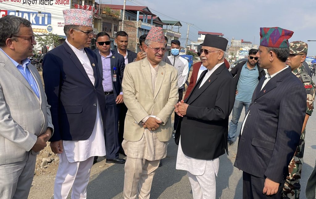 उक्त सडकको गैँडाकोट खण्डको आज निरीक्षण गर्दै प्रधानमन्त्री ओलीले अब निर्माण कार्यमा कुनै ढिलाइ गर्न नहुने बताए । सडक निरीक्षणकै क्रममा उनले निर्माणमा संलग्न ‘चाइना स्टेट इञ्जिनियरिङ कर्पोरेशन लिमिटेड’का प्रतिनिधिसँग समेत सडकको प्रगतिबारे जानकारी लिए । प्रधानमन्त्री ओलीका साथमा उपप्रधानमन्त्री तथा शहरी विकासमन्त्री प्रकाशमान सिंह, भौतिक पूर्वाधार तथा यातायातमन्त्री देवेन्द्र दाहाल र सचिव केशवकुमार शर्मासमेत सहभागी थिए ।