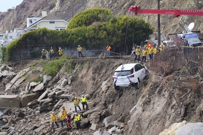 एक दिन एक आपतकालीन वाहन पानीबाट फेब्रुस प्रवाहको साथ खस्यो जब फेब्रुअरी 1 on मा भारी वर्षाको कारणले, मालिबु, क्यालिफ (एपी) मा
