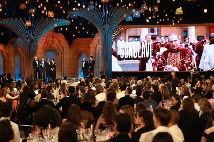 भ्याटिकन थ्रिलर “conclave” एक अप्रत्याशित स्क्रीन अभिनेताहरु मा शीर्ष पुरस्कार आइतवार गिल्ला हाँगामा एक हप्ता को लागी एक हप्ता को लागी नयाँ पोपले उत्तम कास्टको लागि पुरस्कार लिनको लागि रहेका रहस्यमय, पछाडि-बन्द-ढोका चयन प्रक्रियाको बारेमा फिल्म – राल्फ एफेन्स, स्टाल्ली jectly, जोन लिन्गाला र इभब्ल्यूबेल रसिनली।