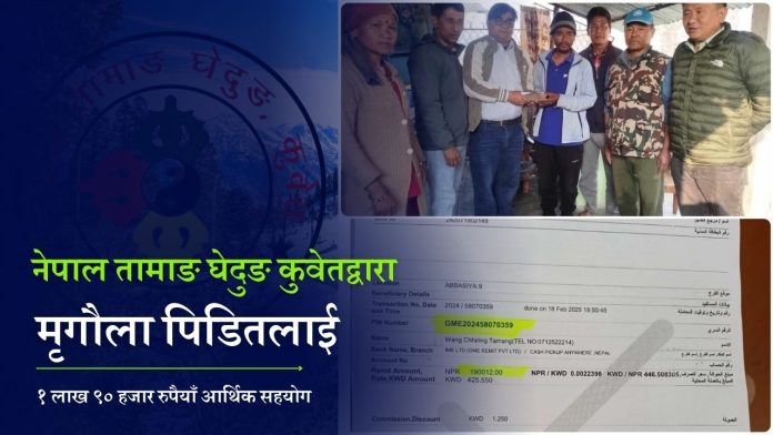 कुवेत – नेपाल तामाङ घेदुङ कुवेतले चितवन रत्न नगर ७ का मृगौला पिडीत सिंह लामा तामाङलाई नेपाल तामाङ घेदुङ कुवेतद्वारा आयोजित मञ्जुश्री संवत २८६१ डुल ल्हो सा पुख्री सर्प वर्ग सोनाम ल्होछार तथा बृहत सांस्कृतिक कार्यक्रम्मा उपस्थित दर्शक हरुबाट आर्थिक सहयोग प्राप्त भएको हो । उक्त कार्यको पहल गायक तथा समाजसेवी डीबी लोप्चनले गरेका थिए । घेदुङ कुवेतको उक्त कार्यक्रम र केही घेदुङ कुवेतका पदाधिकारिहरुबाट थपेर सहयोग संकलन गरी १ लाख ९० हजार १२ रुपैयाँ आर्थिक सहयोग गरेको हो।