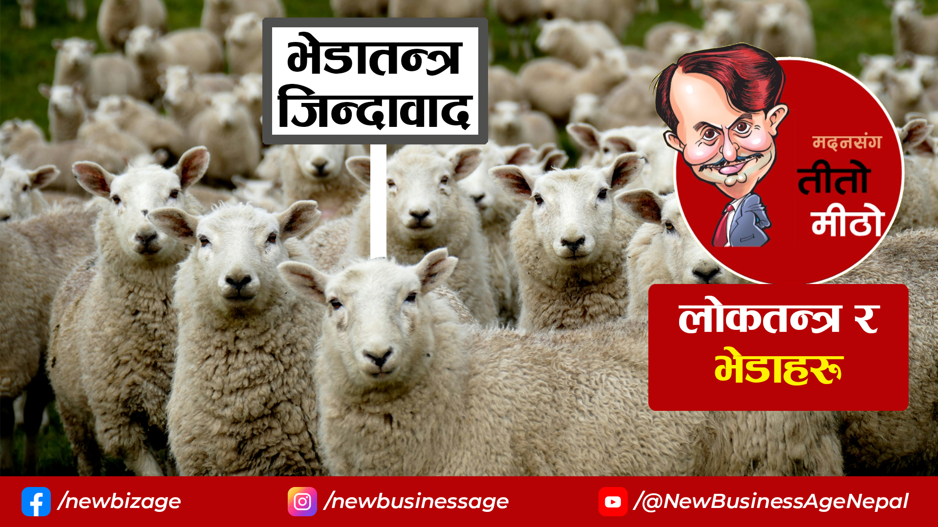 लोकतन्त्रको विकाससँगै देशमा भेडाहरूको पनि उपस्थिति बढ्दै गएको छ । जंगल र गाउँसम्म मात्र सीमित भएको भेडाहरूको संसार अहिले शहरको गल्ली, अदालतको आँगनदेखि संसद् भवनसम्म ‘भ्या–भ्या’ गर्दै फैलिएको छ । चितवनका जंगलहरू, पोखराका तालछेउ, बुटवलका चोकदेखि वीरगञ्जका बाइपाससम्म भेडाहरूको जुलुसले ठाउँ छोड्दैन । भेडाहरू हिमाल र पहाडमा मात्र पाइन्छन् भन्ठान्नुहोला । त्यसो होइन नि । यो त तराईमा समेत प्रशस्त पाइन्छ ।