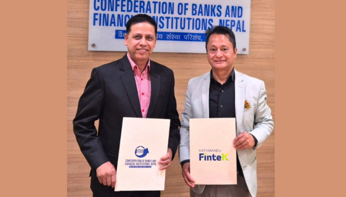 काठमाडौं । बैंक तथा वित्तीय संस्था परिसंघ नेपाल (सिबिफिन) र काठमाडौं फिनटेक प्रा.लि. (केएफ) बीच नेपाली बैंकिङ क्षेत्रमा डिजिटल परिवर्तन, नेतृत्व विकास, तथा सुशासन प्रवर्द्धन गर्ने उद्देश्यले ऐतिहासिक रणनीतिक साझेदारी सम्झौतामा हस्ताक्षर गरिएको छ ।