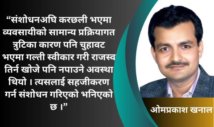 संशोधनअघि करछली भएमा व्यवसायीको सामान्य प्रक्रियागत त्रुटिका कारण पनि चुहावट भएमा गल्ती स्वीकार गरी राजस्व तिर्न खोजे पनि नपाउने अवस्था थियो । त्यसलाई सहजीकरण गर्न संशोधन गरिएको भनिएको छ ।