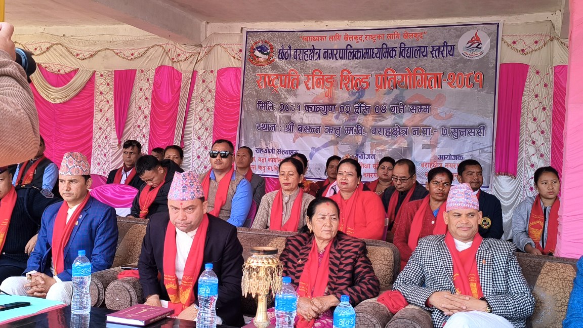 बराहक्षेत्र नगरपालिकाका २८ वटा विद्यालयको सहभागितामा छैठौं बराहक्षेत्र नगरपालिका माध्यमिक विद्यालय स्तरीय राष्ट्रपति रनिङशिल्ड प्रतियोगिता-२०८१ को शुभारम्भ गरिएको छ ।