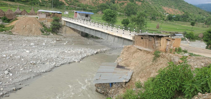 रामेछापको भटौली खोलाको पुल कटानको जोखिममा, संरक्षण नगरे बगाउने खतरा